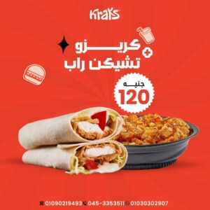 عدد 6 قطع من الدجاج المقرمش + 2 ارز + 2 باكت بطاطس + بيج كولا لتر + كولسلو ميديم
