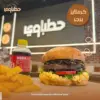 قطعة برجر لحم صافى مع صوص تيكساس وصوص شيدر و شرائح هالبينو و حلقات بصل و خس بوتافيا وشرائح طماطم وخيار مخلل ومشروم فريش