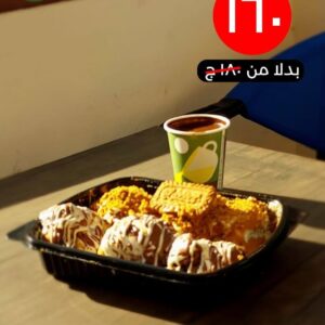 عرض ١٠ قطع ميني بان كيك و١٠قطع براونيز معاهم ايس لاتيه